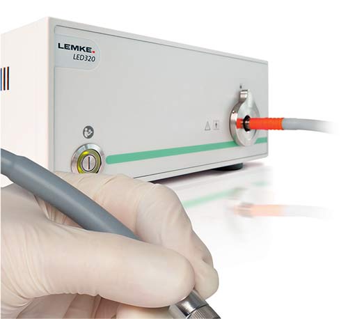 LEMKE莱科公司的LED320是一种高亮度白光灯光源,专为微创医疗使用而设计。它的流明输出超过180W氙灯光源 。相比与氙灯光源其LED寿命极长 (长达10年),无需因光源使用量大而频繁更换灯泡,节约了医院后续使用成本。相比于180 W氙灯光源, LED320光源不产生紫外光和红外光,减少热传递,防止内窥镜过热对组织灼伤的风险。LED320光源照明分布更均匀,光均匀性好,有效提高传感器工作效率。LED320光源开启不会产生瞬时升温或降温,所以其多功能光电缆插座可以兼容不同品牌光纤,通用性强。