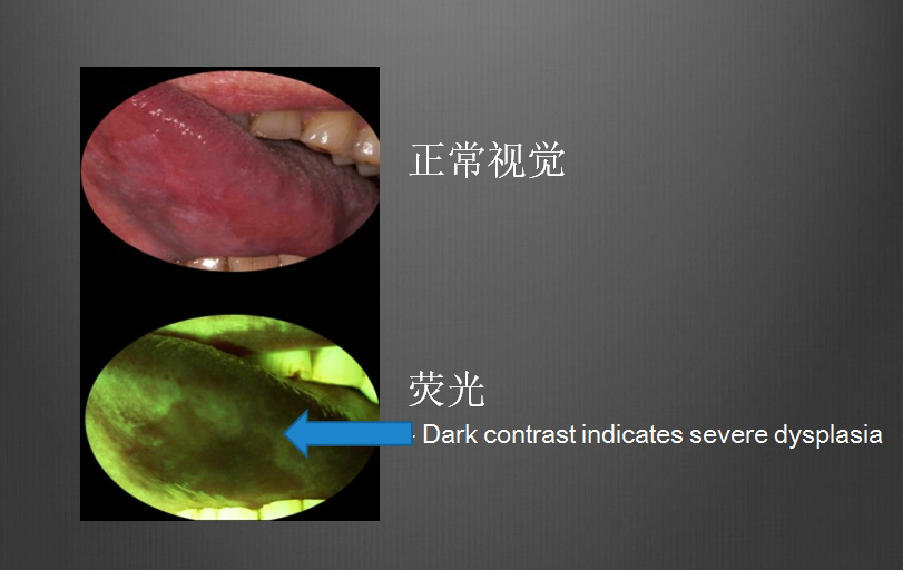 DOE可以提供整个口腔内的检查,包括唇颊侧、牙龈、舌头以及上下颚。通过紫光灯头的照射,透过滤镜观察,健康的组织呈现荧光绿色,而病变的组织颜色变暗,只需2—3分钟,即可完成检测。